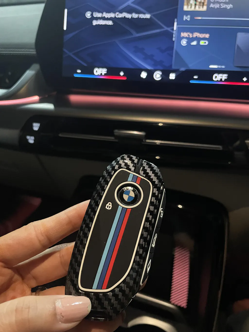 BMW X5 2023 | X7 2023 Luxury Premium Metal Carbon Fiber Black Soft Sillcon Smart Car Key Cover Key Case With Key Chain ( 3 button )